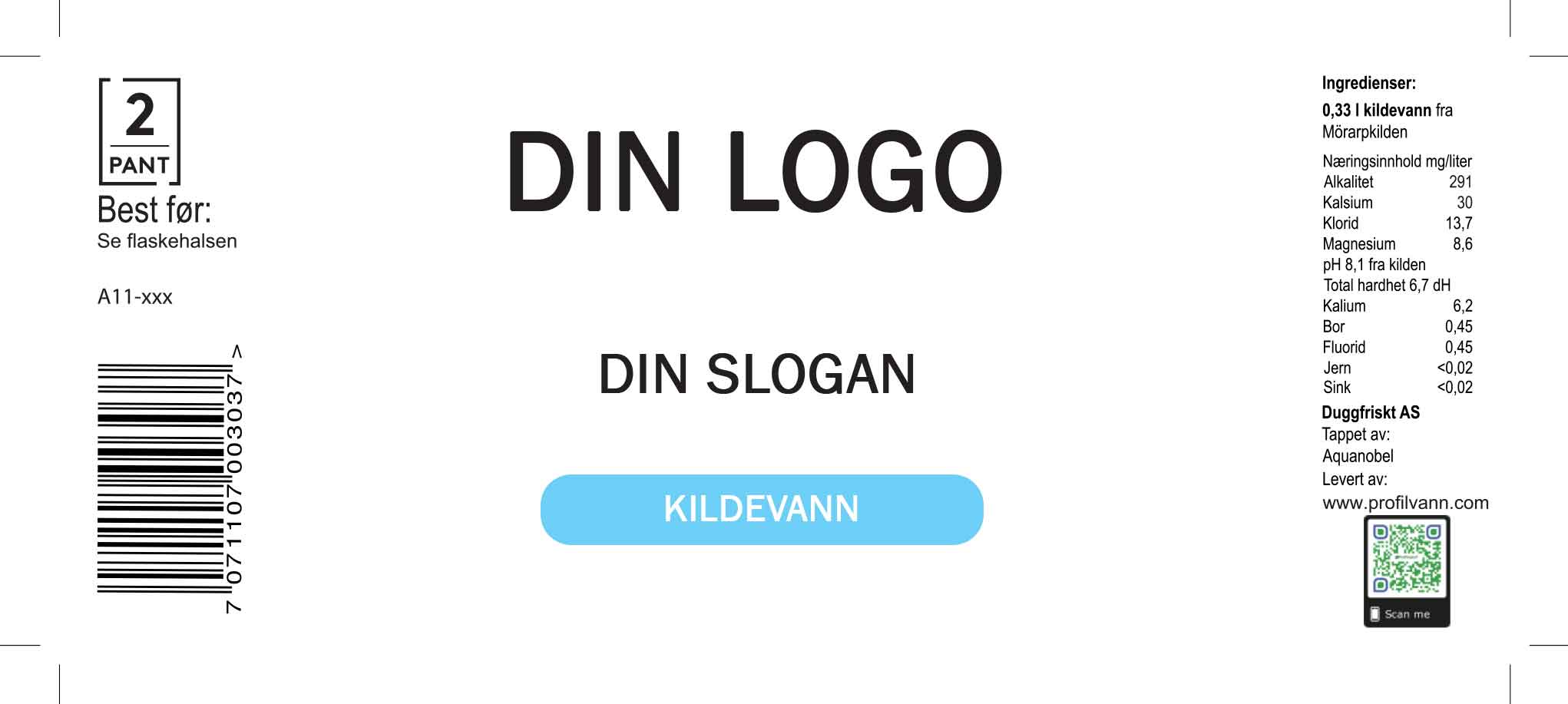 Kildevann eksempel №1 vann på flaske med din logo